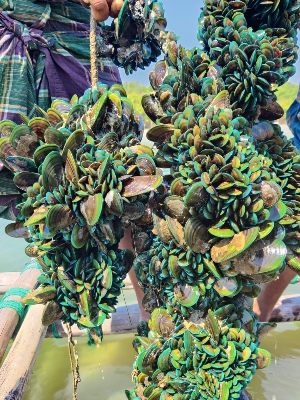 Green mussel culture in Bangladesh has emerged as a promising and sustainable aquaculture practice. Green mussel farming involves suspending ropes or bamboo poles in estuaries or coastal areas where the mussels can attach themselves. These mussels are filter feeders, contributing to the purification of water and reducing pollution. The cultivation of green mussels not only provides a valuable source of income for coastal communities but also promotes ecological balance by improving water quality and supporting biodiversity